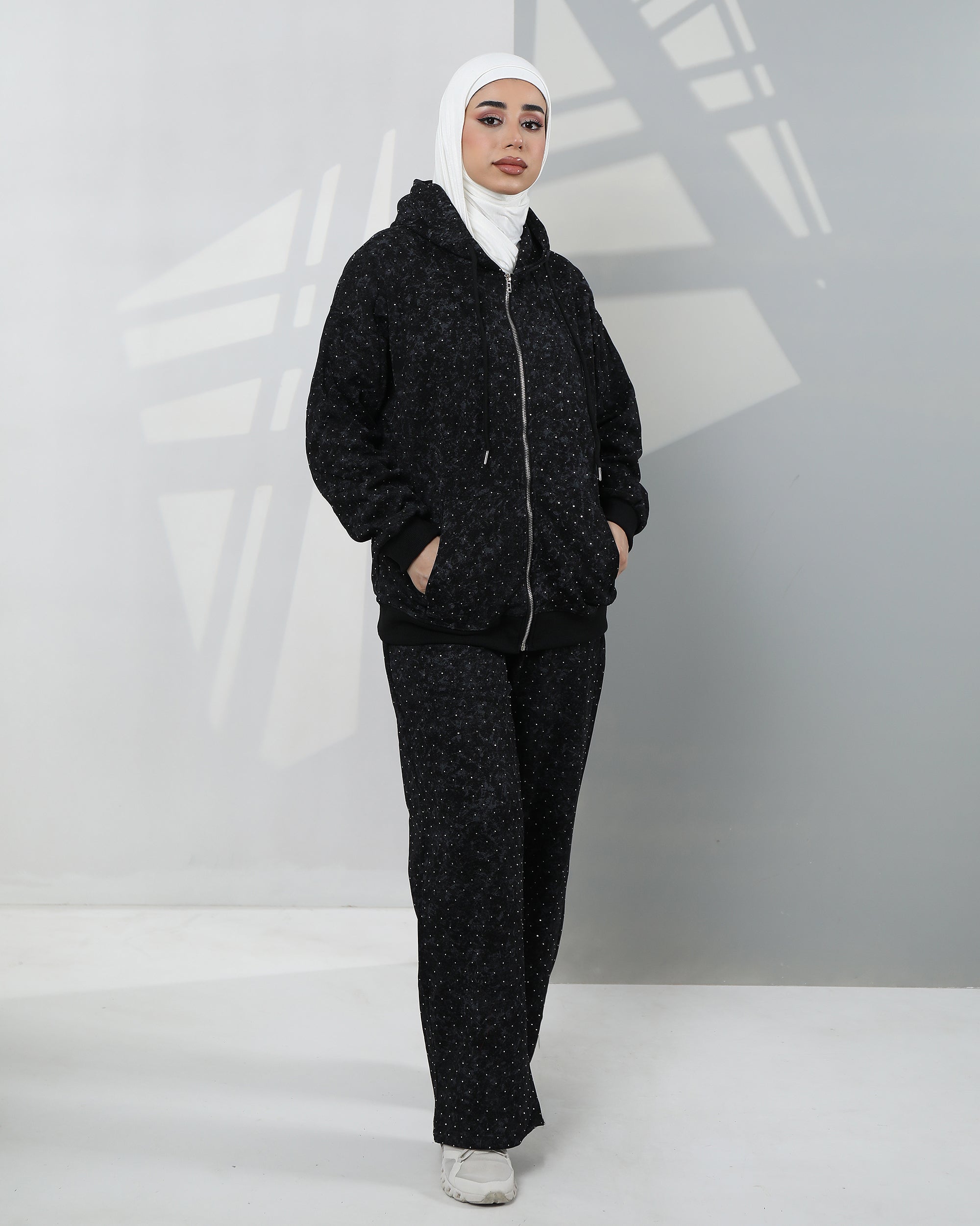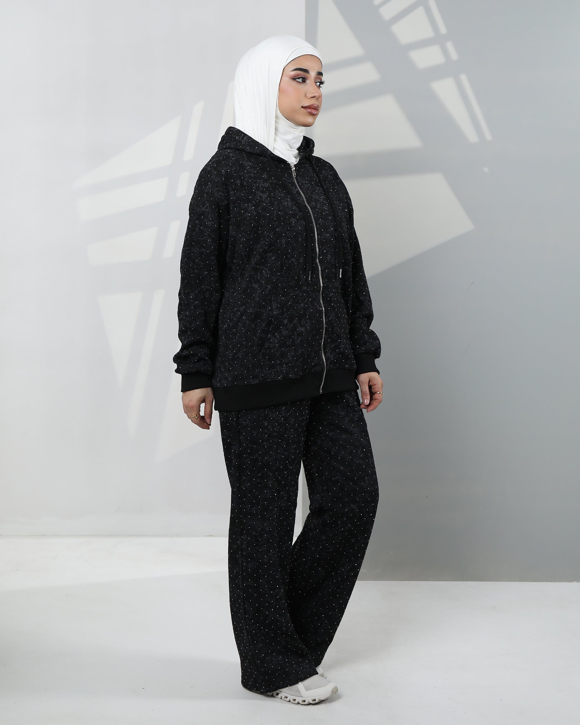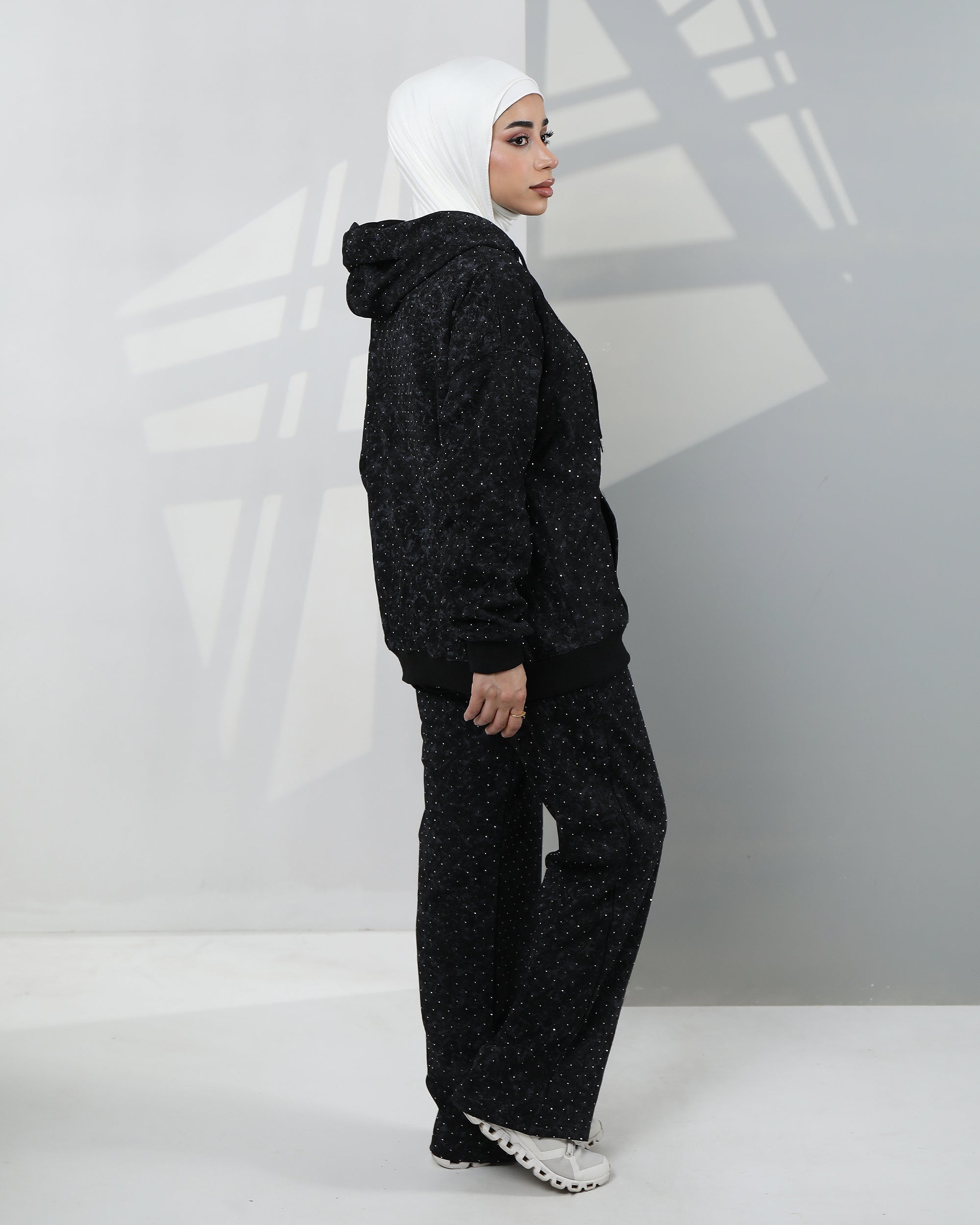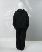 طقم هودي من المخمل المنقط - أسود