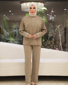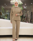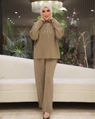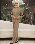 طقم مكون من قطعتين مصمم من قطن سميك، مزين بتفاصيل دقيقة من الخرز لإنهاء أنيق وعصري.