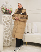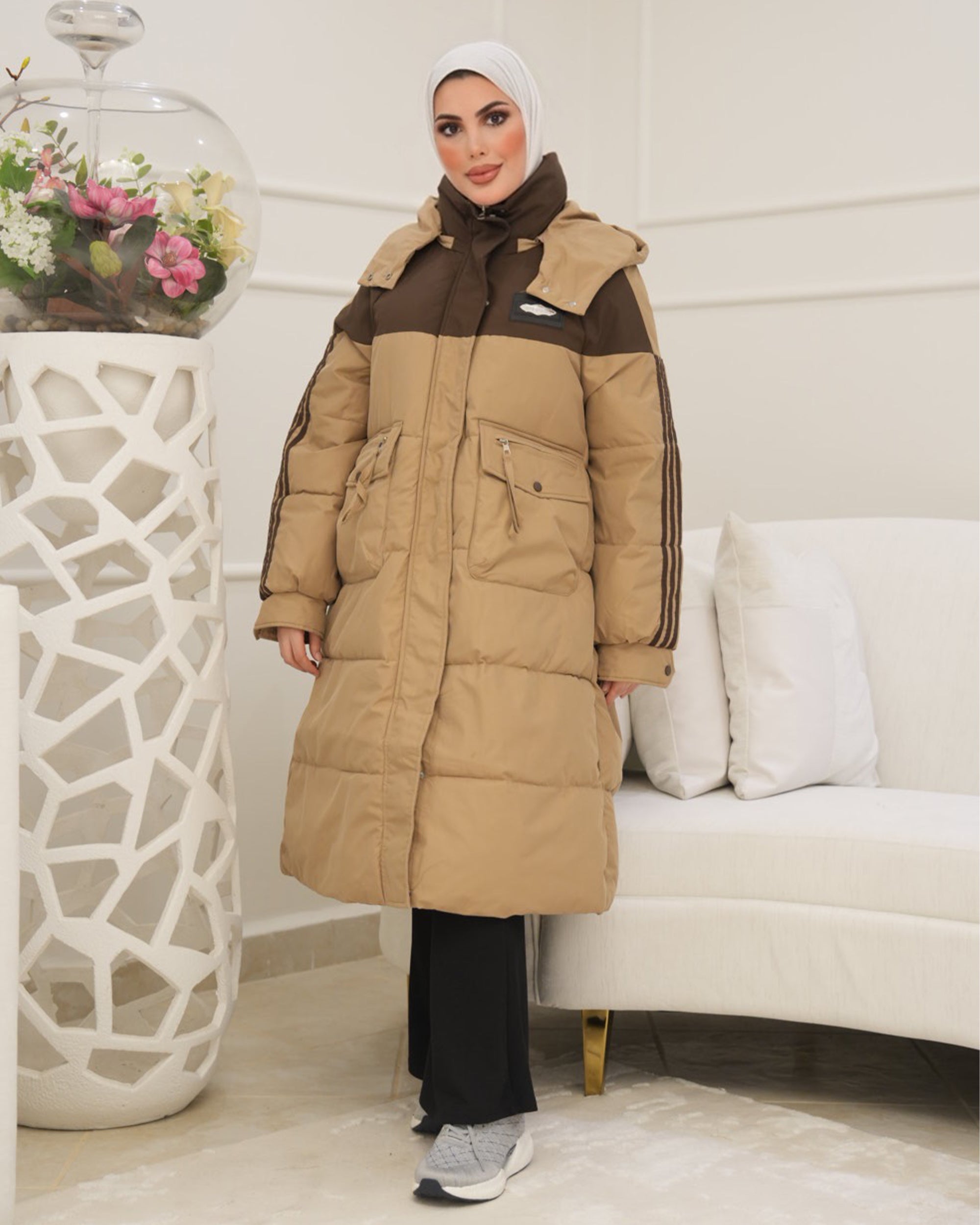 جاكيت مبطن طويل مصنوع من قماش بروكاد، مصمم للدفء والتغطية والارتداء اليومي في فصل الشتاء.