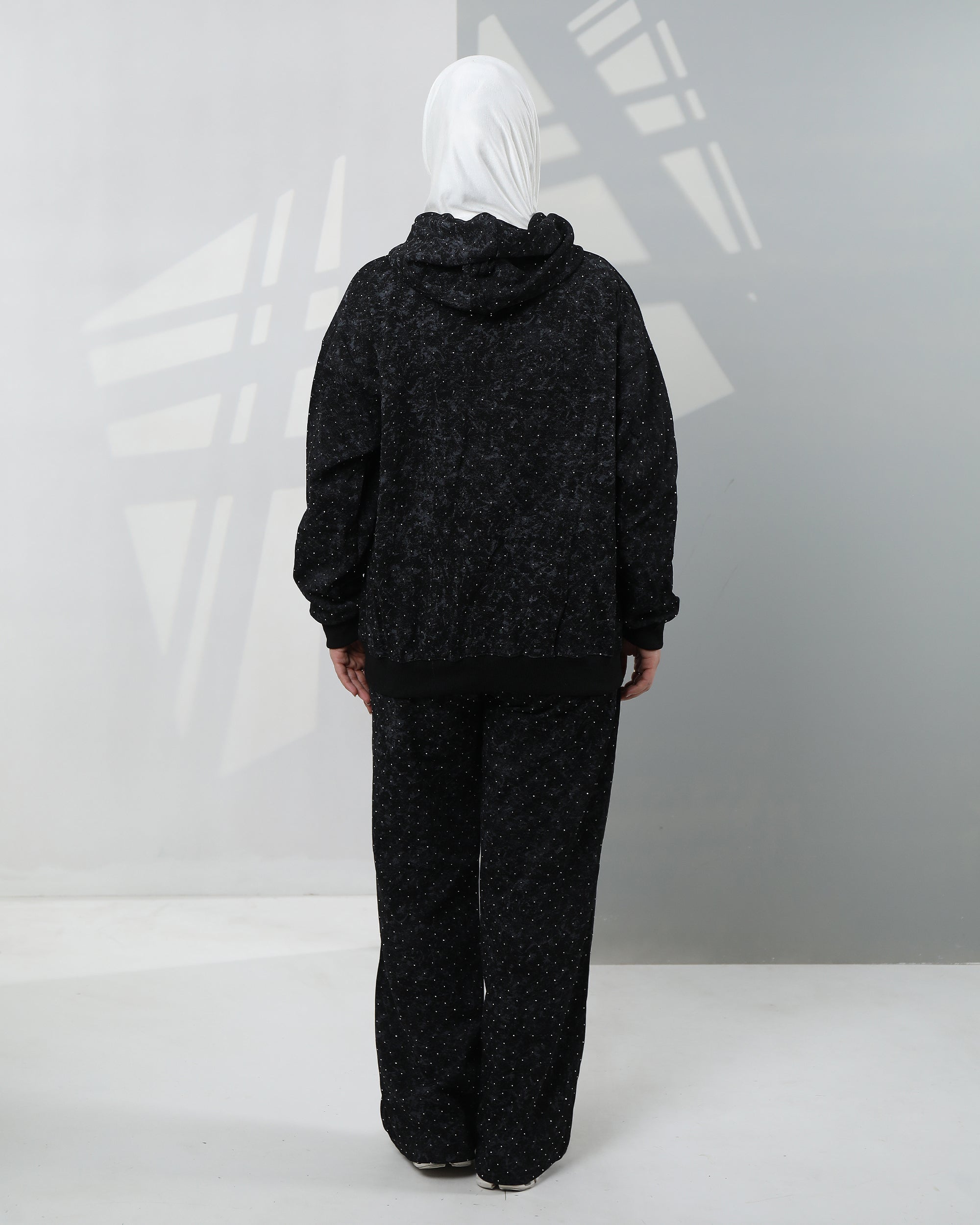 Speckled Velvet Hoodie Two-Piece Set – Black