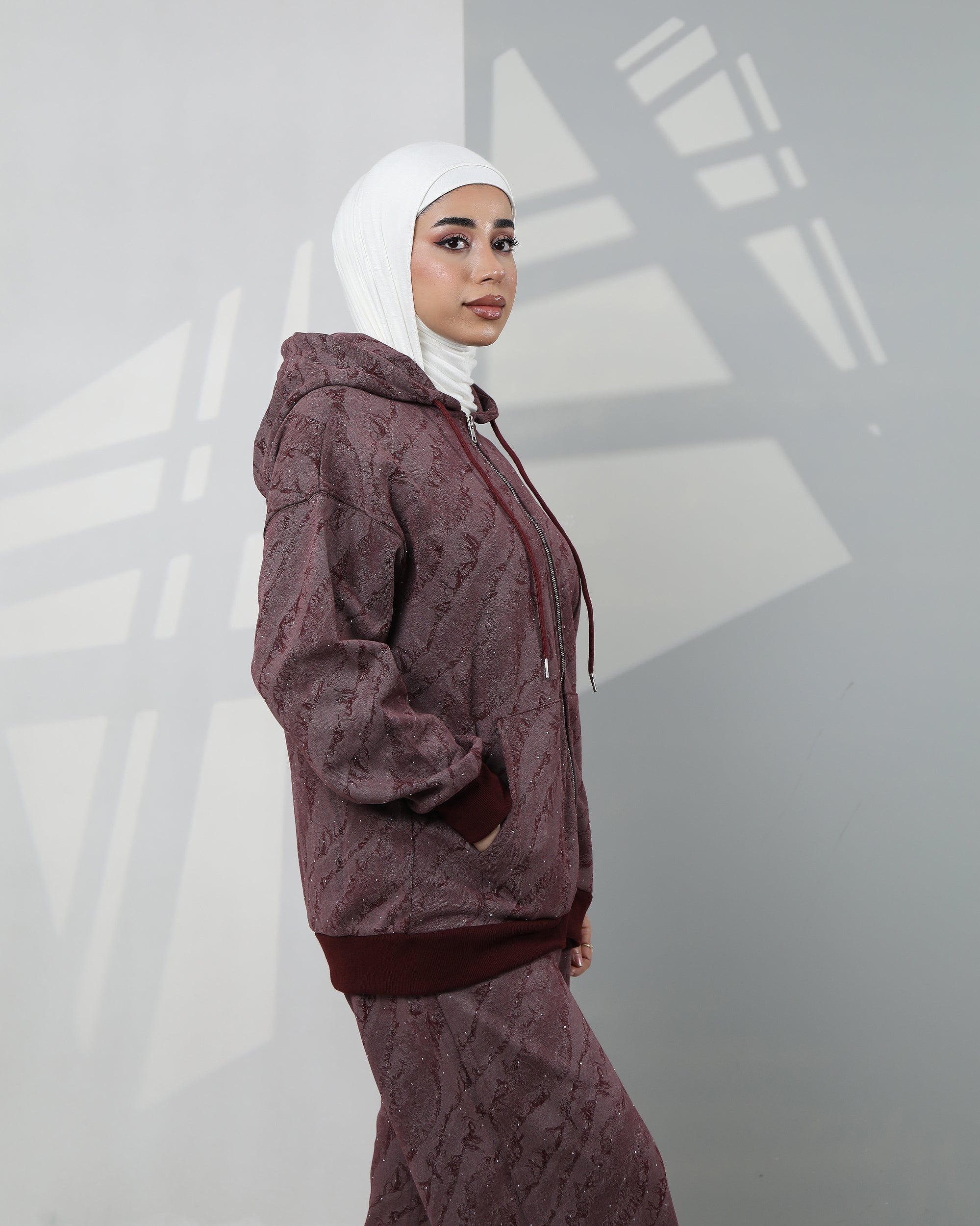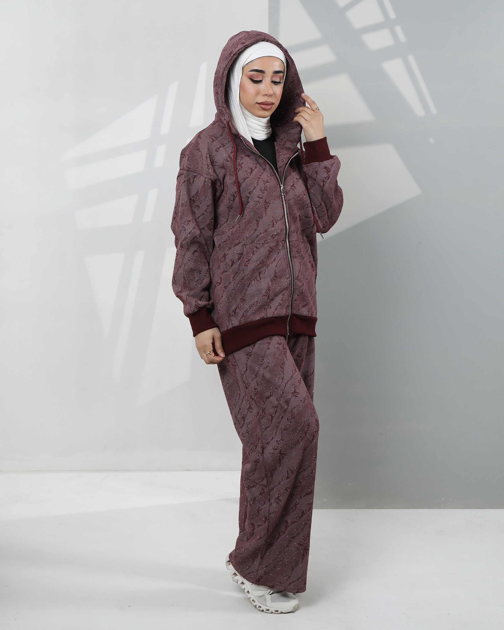Speckled Velvet Hoodie Two-Piece Set – Burgundy