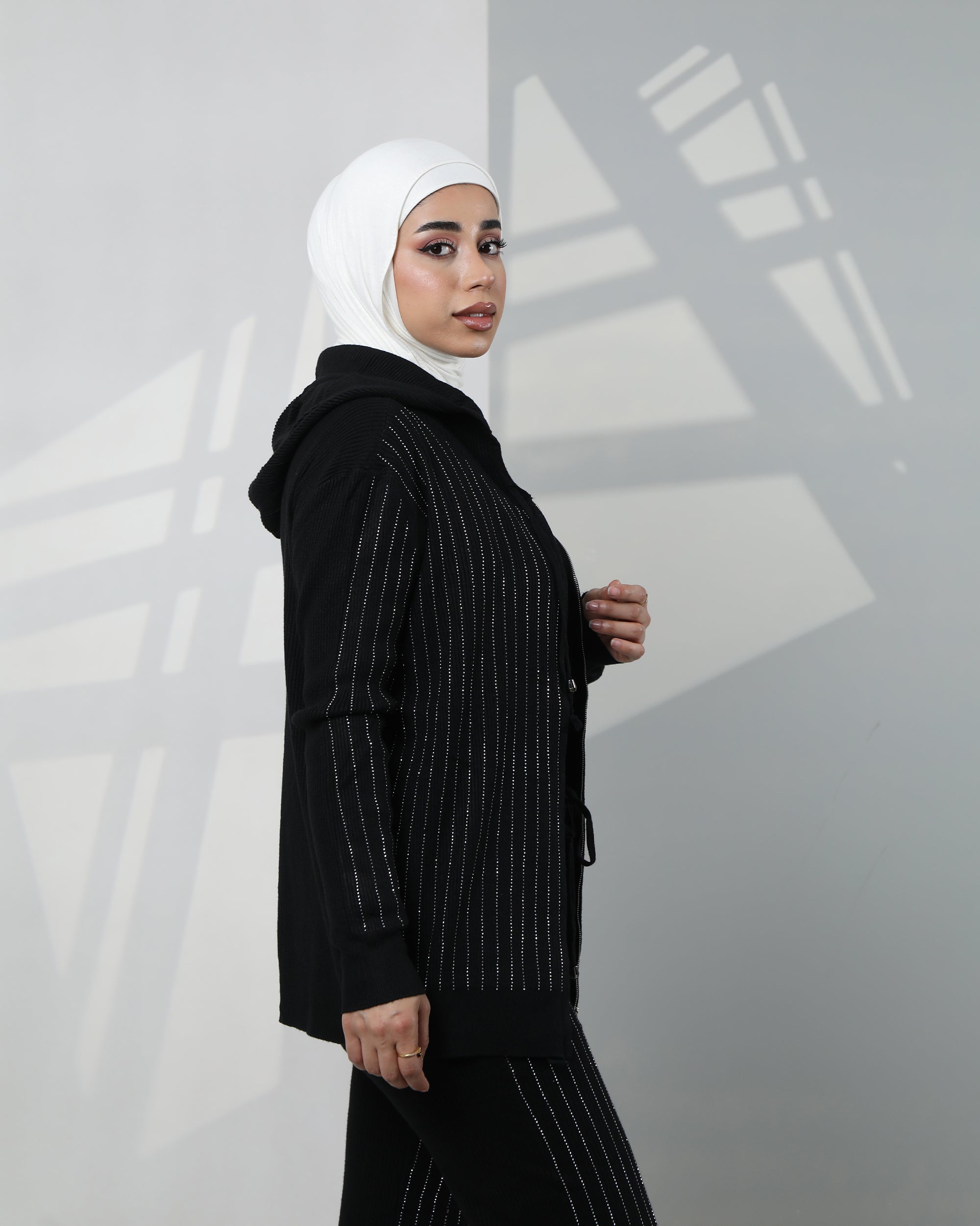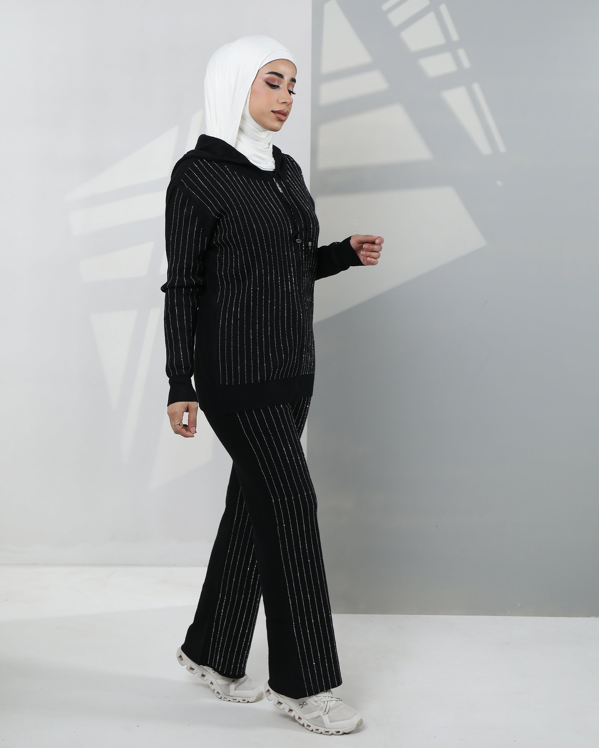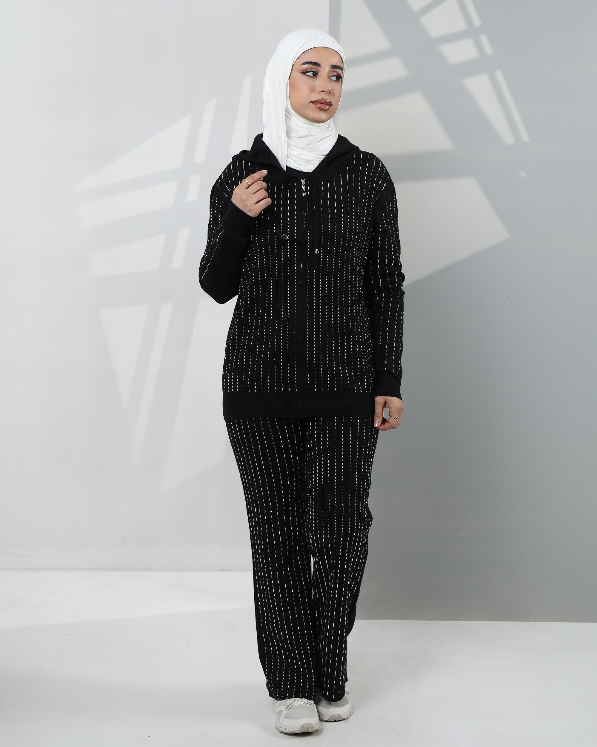 Striped Velvet Hoodie Two-Piece Set – Classic Black