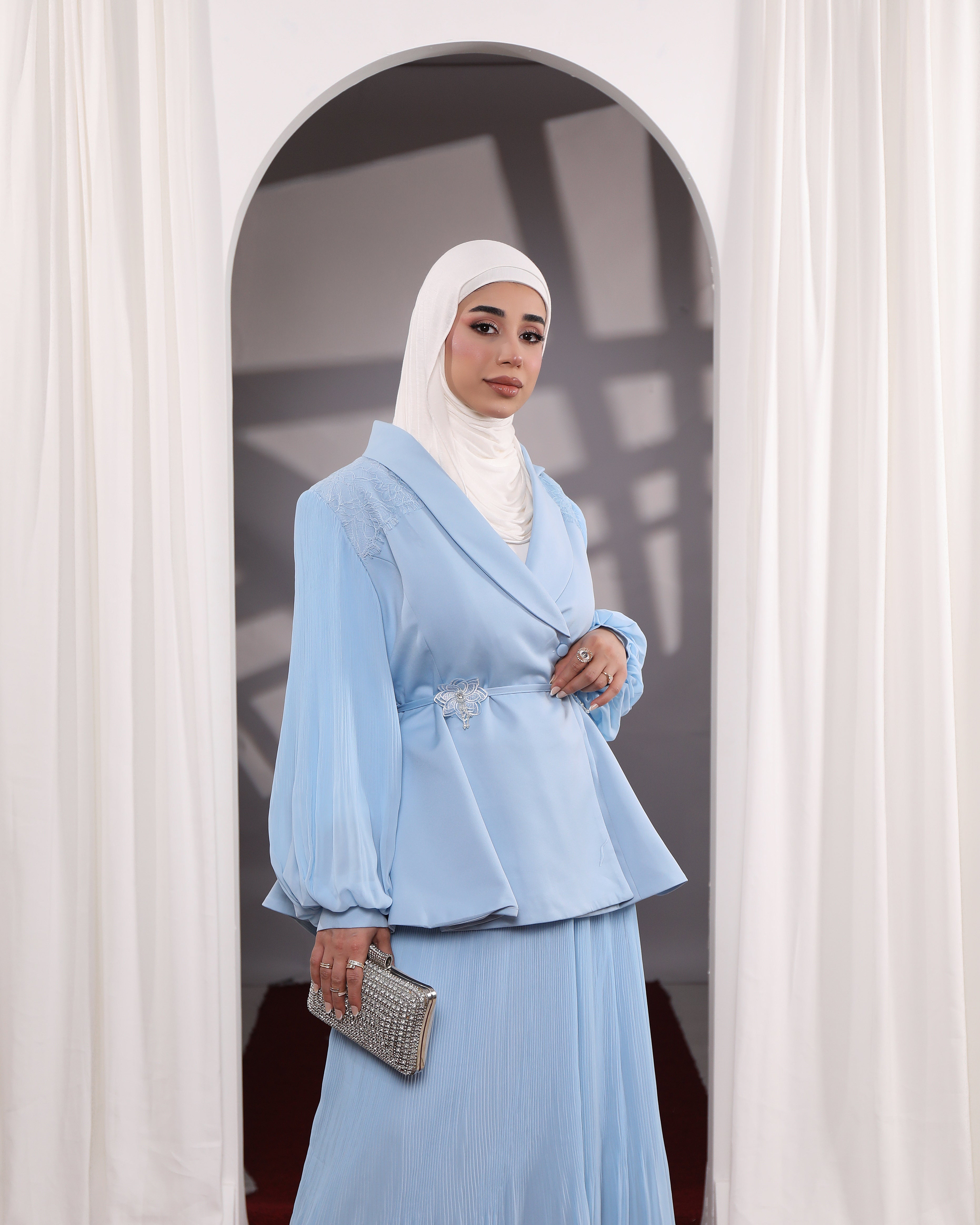 Crepe Blazer & Pleated Skirt Set – Powder Blue