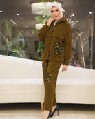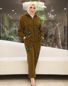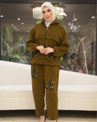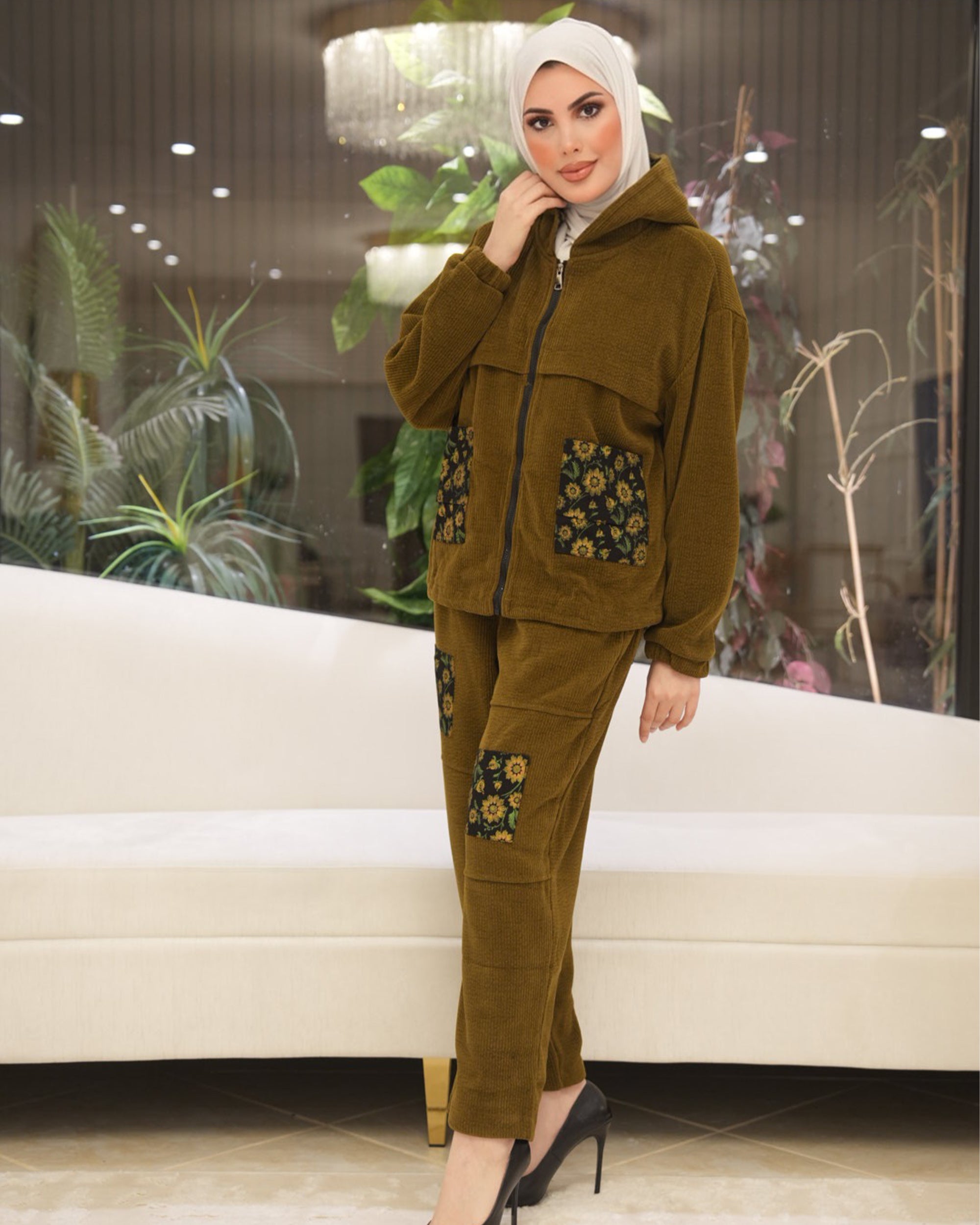 A coordinated two-piece set crafted from soft velvet, designed for comfort with subtle patterned detailing.