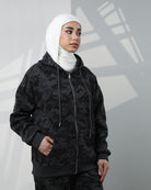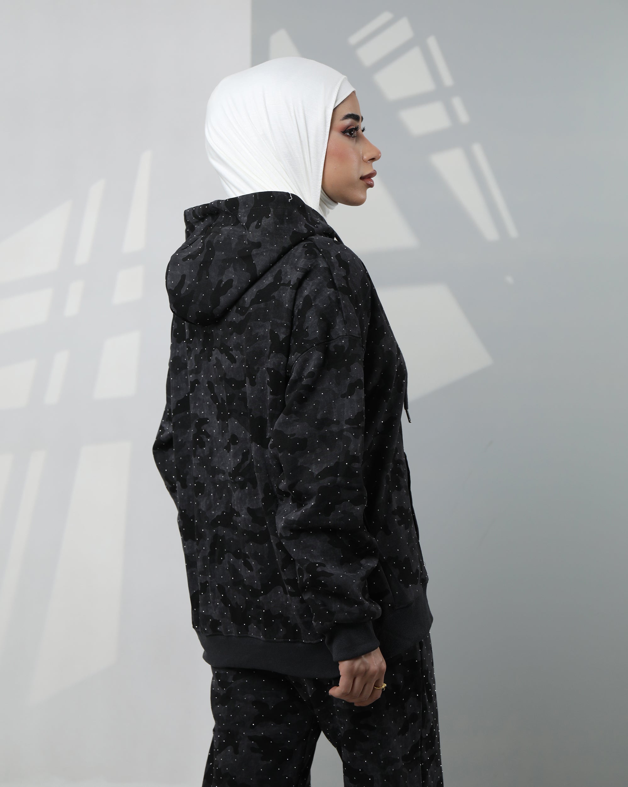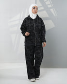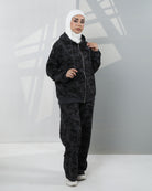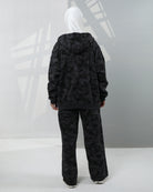 Camo-Print Velvet Hoodie Two-Piece Set – Black