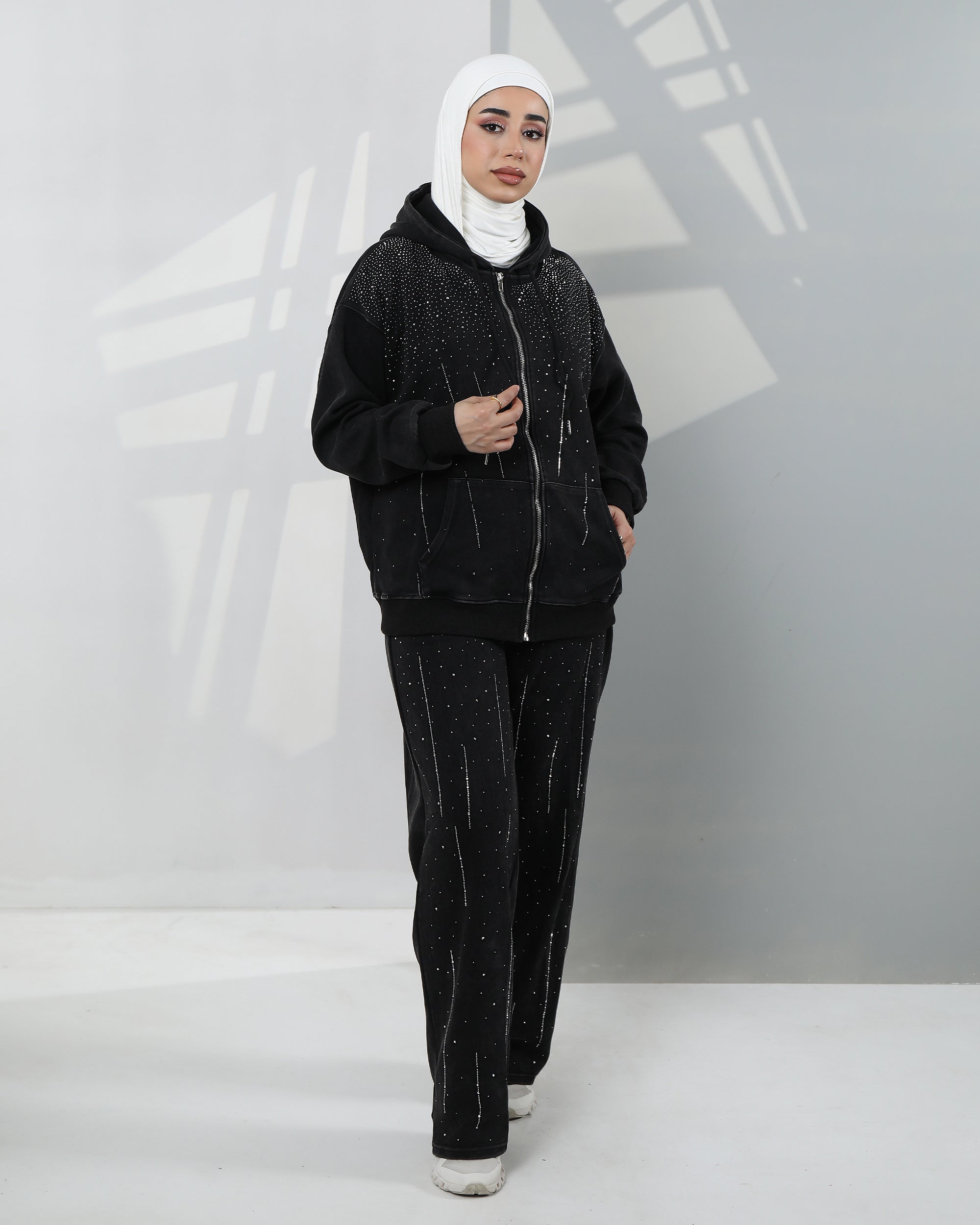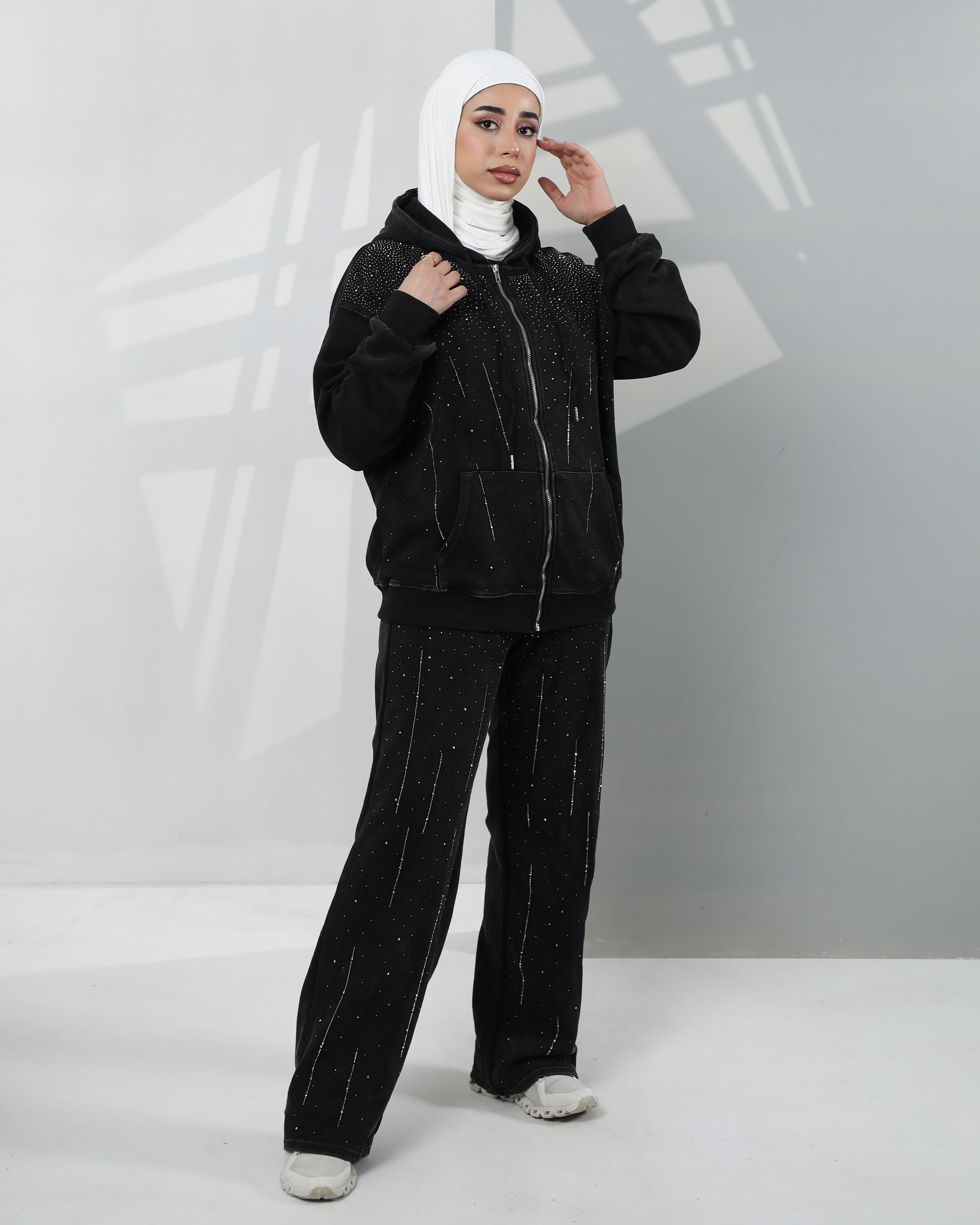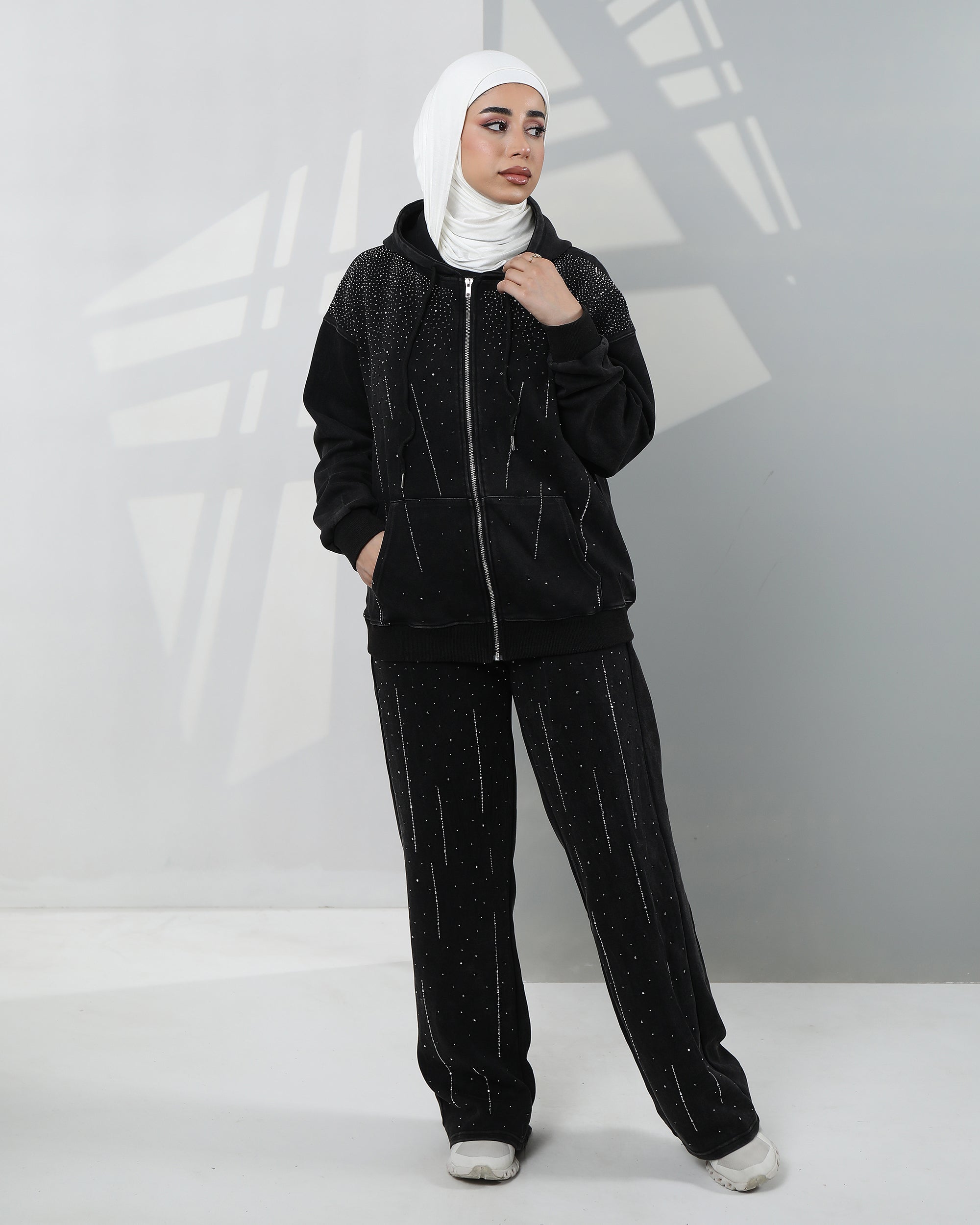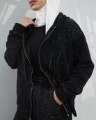 Embellished Velvet Hoodie Two-Piece Set – Classic Black