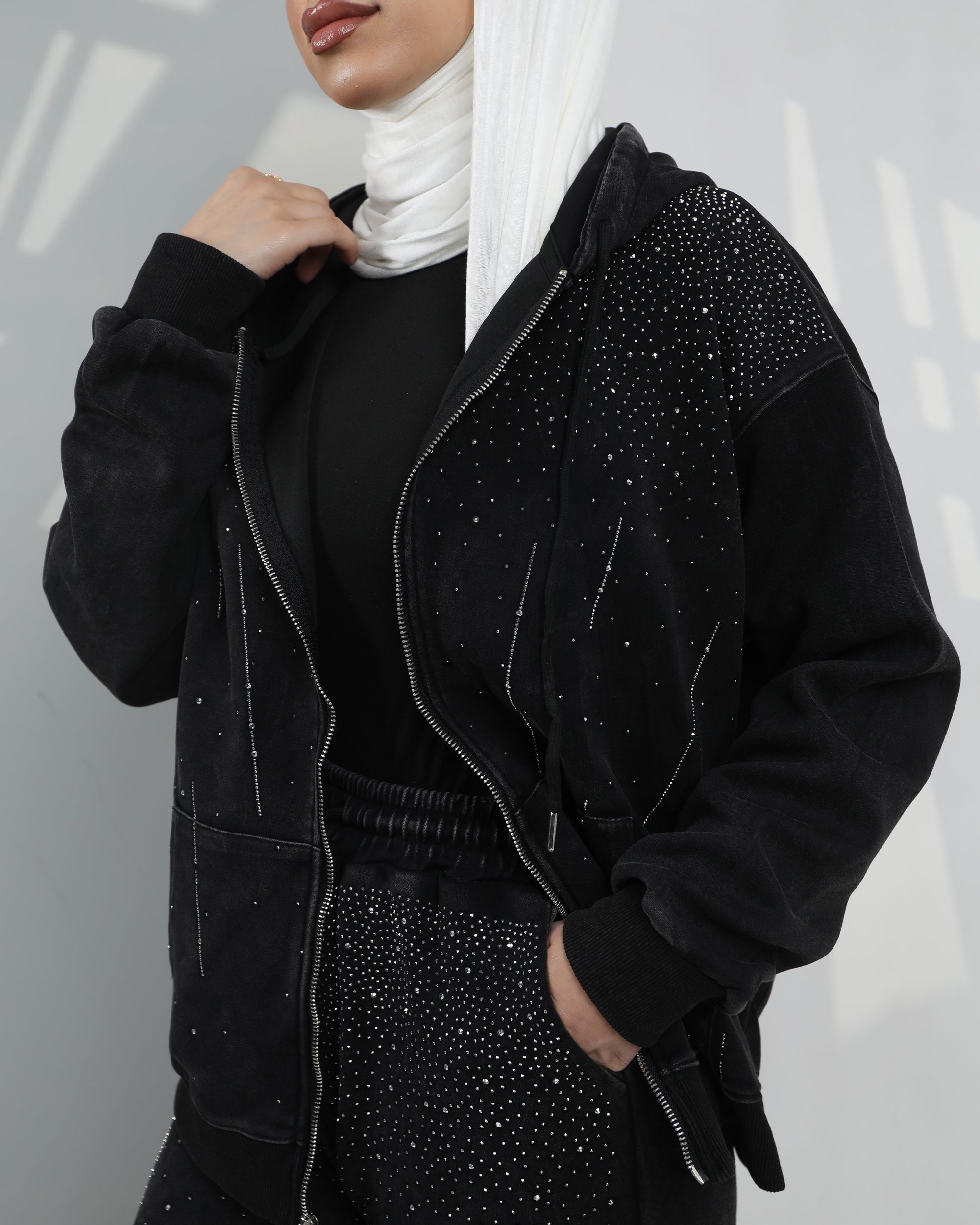- Zip-up hooded top with delicate embellished detailing