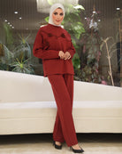 - Matching straight-leg pants for a streamlined silhouette